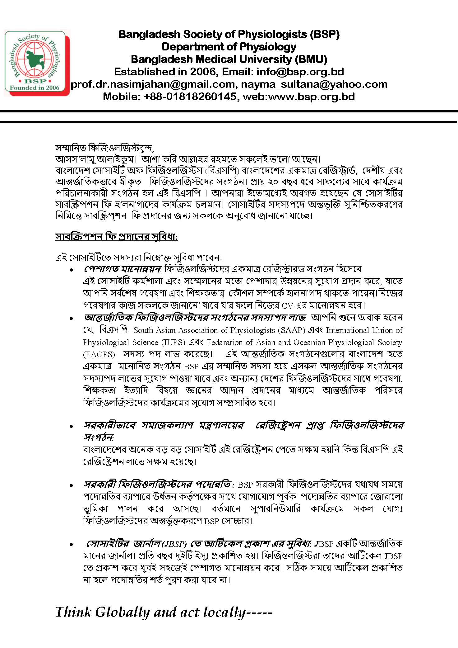 This is to inform all members of BSP that the annual subscription fees for the year 2024–2025 are now due.
